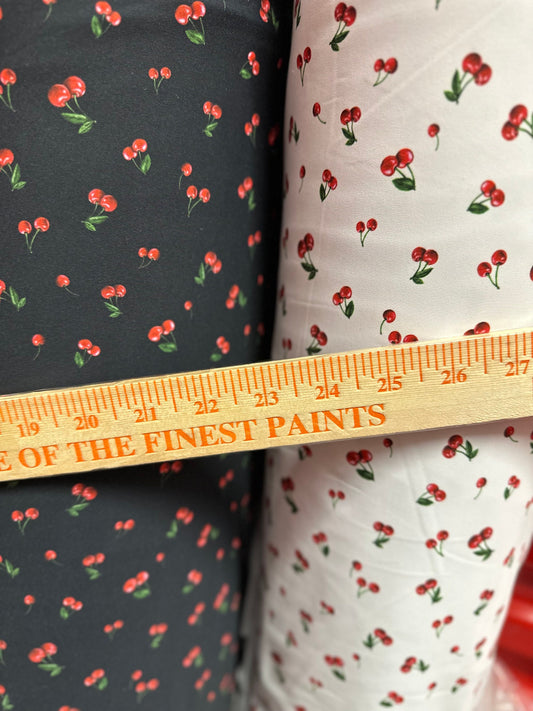 Small cherry design print on great quality of nylon spandex 4-way stretch 58/60”