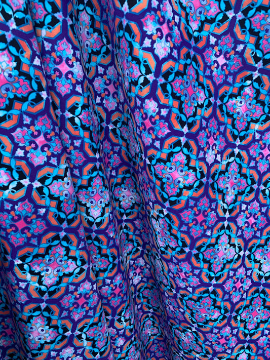 New heavy nylon spandex print Isabella design 4way Stretch 58/60" Sold by the YD. Ships worldwide from Los Angeles California USA.
