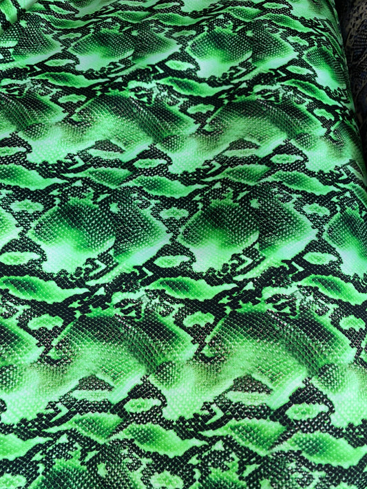 New venom snake design green/black print on best quality of nylon spandex 4-way stretch 58/60” Sold by the YD. Ships worldwide from L.A CA