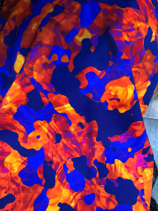 Abstract lava design yellow/blue/sapphire print on great quality of Nylon spandex 4-way stretch 58/60”