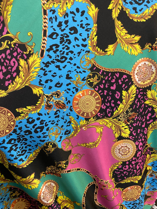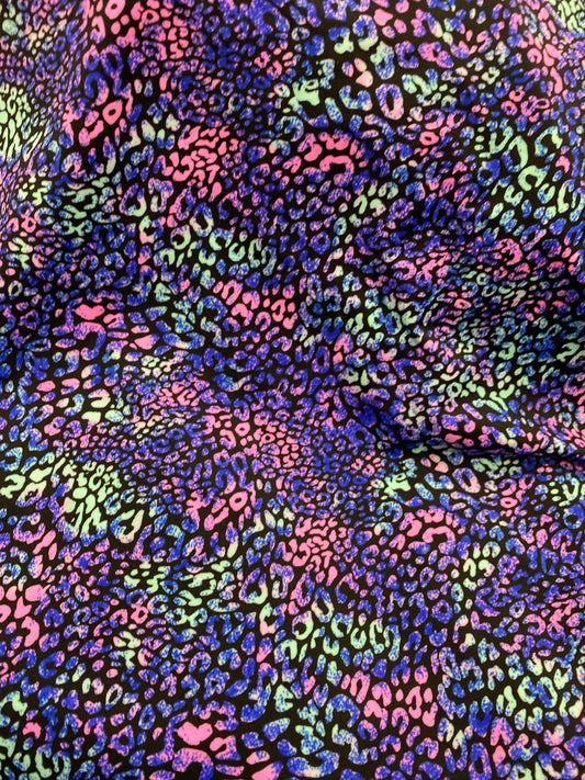New leopard design purple/pink/green print on great quality of nylon spandex 4-way stretch 58/60” Sold by the YD. Ships worldwide