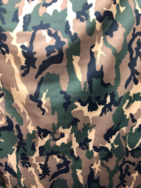 Camouflage design on nylon spandex 4way stretch 58/60" Sils by the YD. Ships worldwide from Los Angeles California USA
