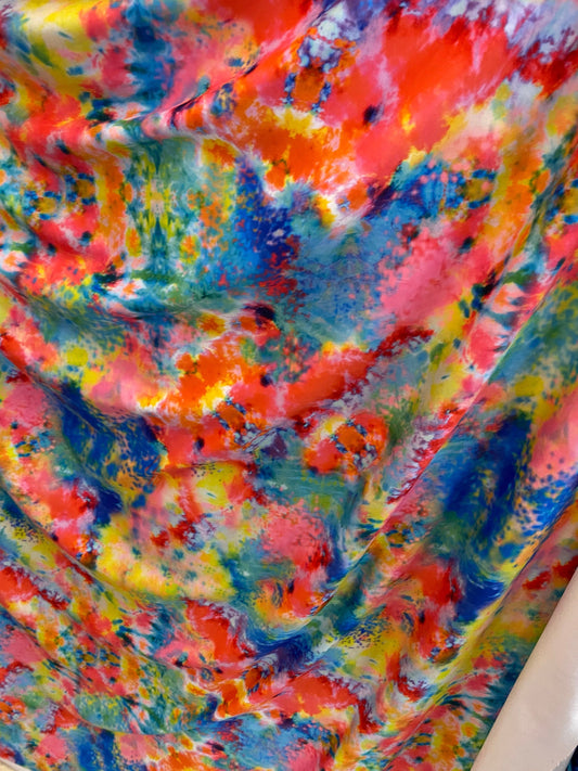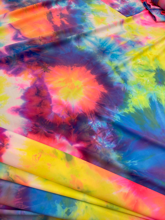 Great quality of tie dye nylon spandex 4-way stretch multicolor 58/60” Sold by the YD. Ships worldwide from Los Angeles California USA.