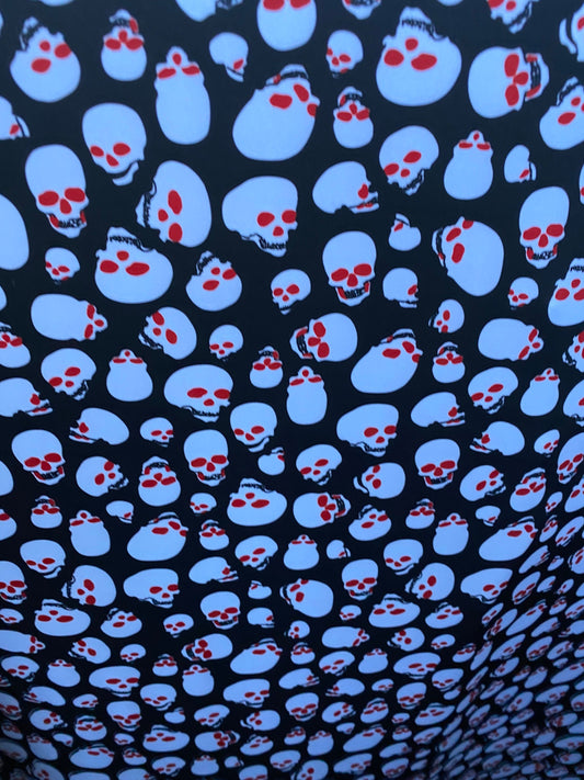 New skull ghost rider design print on nylon spandex 4-way stretch 58/60” Sold by the YD. Ships worldwide from Los Ángeles California USA.