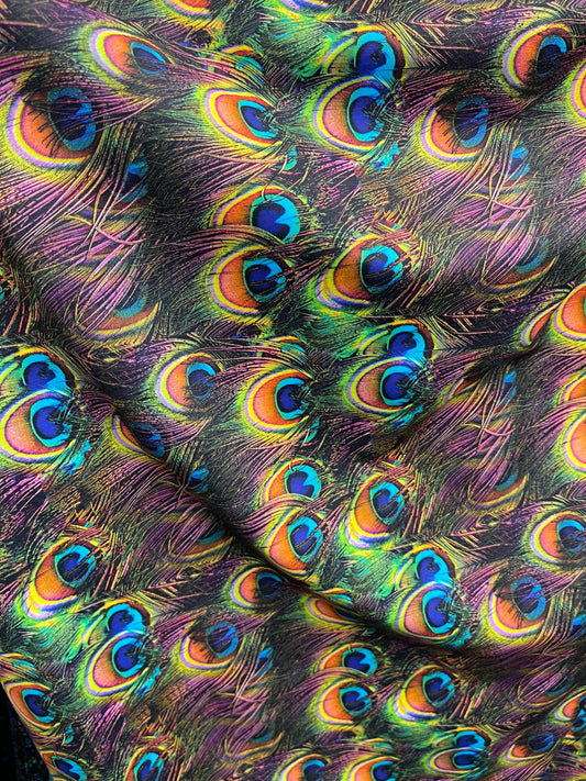 Exotic Peacock design print on Great quality of nylon spandex 4-way stretch 58/60” Sold by the YD. Ships Worldwide from Los Angeles cali