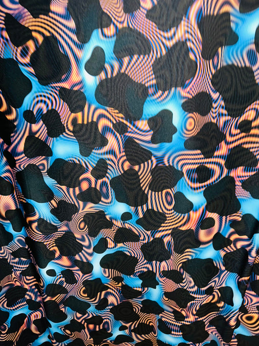 Luxury Abstract Cow design Multicolor doble print on great quality of poly spandex 4-way stretch 58/60” Sold by the YD. Ships worldwide