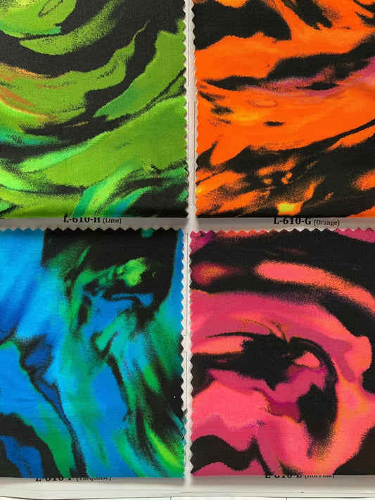 New tie dye multicolor print on best quality of nylon spandex 4-way stretch 58/60” Sold by the YD. Ships Worldwide from Los Angeles cali