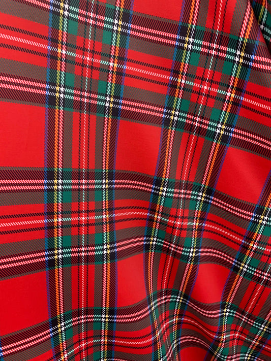 New Christmas Red Plaid Design Print On Heavy Nylon spandex 4-Way 58/60” Sold By The YD. Ships Worldwide From Los Angeles California USA.