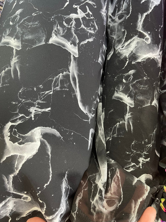 New abstract Marble design Black/white print on best quality of nylon spandex and power mesh 4-way stretch 58/60” Sold by the YD.