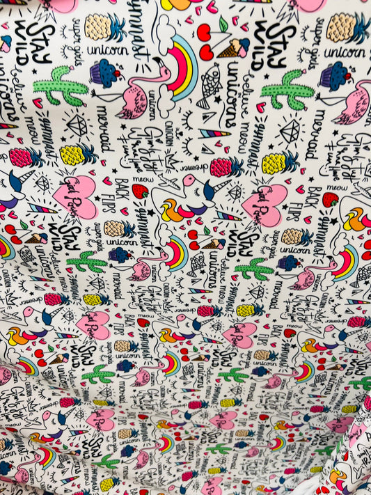 New Multi Unicorns design print on great quality of nylon spandex 4-way stretch 58/60” Sold by the YD. Ships Worldwide from Los Angeles CA