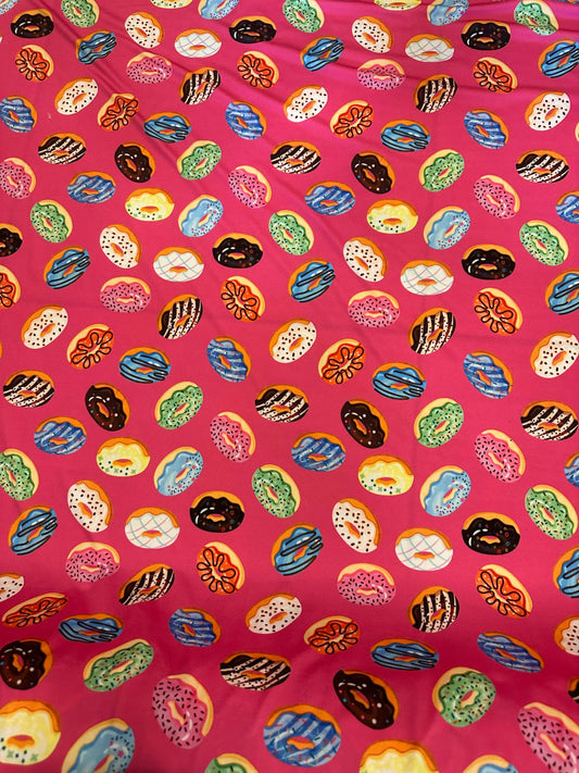 Donuts design Multicolor print on great quality of Nylon spandex 4-way stretch 58/60” Sold by the YD. Ships Worldwide from Los Angeles CA