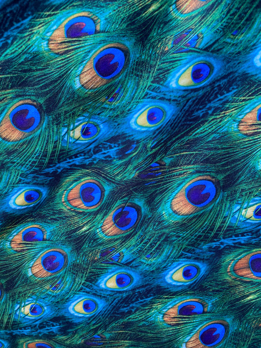 Peacock design print of great quality of nylon spandex 4-way stretch 58/60” Sold by the YD. Ships worldwide from Los Angeles California USA.