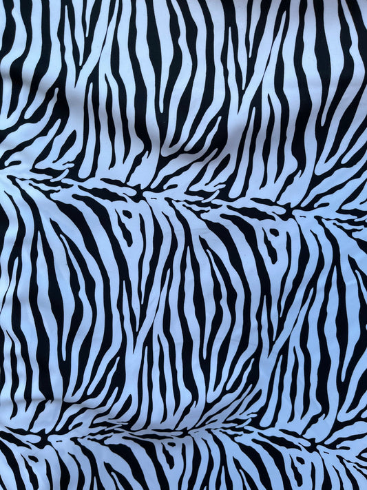 New Exotic zebra design medium size print on best quality of nylon spandex 4-way stretch 58/60” Sold by the YD. Ships Worldwide from L.A CA.