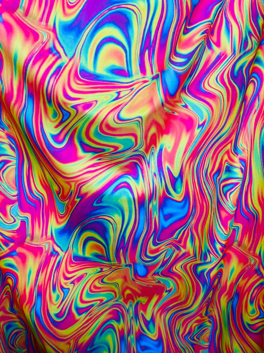 New tie dye design print on poly spandex 4-way stretch 58/60” Sold by the YD. Ships Worldwide from Los Angeles California USA.