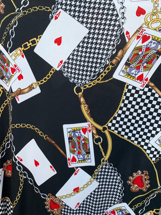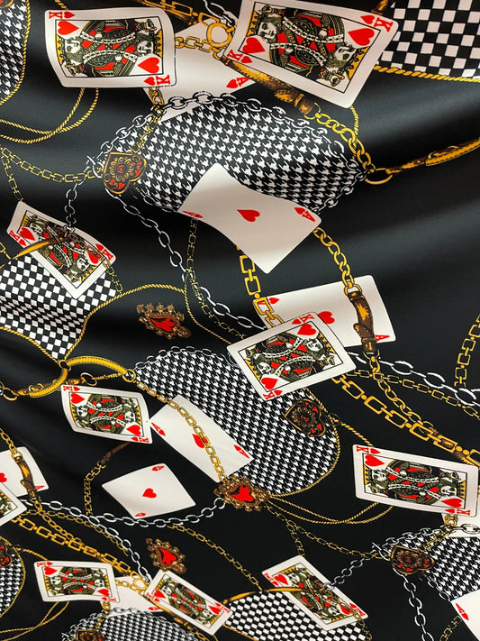 Playing cards design modern luxury design print on great quality of nylon spandex 4-way stretch 58/60” Sold by the YD. Ships Worldwide