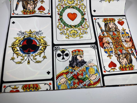 New king cards design playing cards style print on best quality of nylon spandex 4-way stretch 58/60” Sold by the YD.