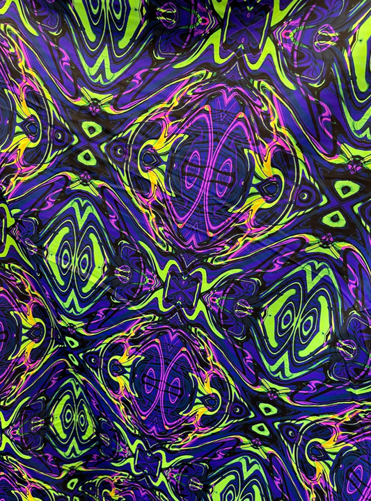 New abstract design purple/green print on best quality of nylon spandex 4-way stretch 58/60”