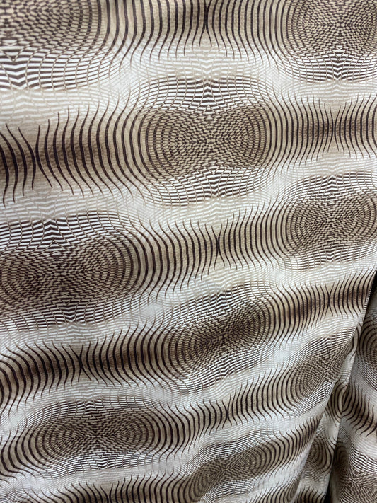New exotic animal print Italian print nylon spandex 4-way stretch 58/60” Sold by the YD. Ships worldwide from Los Angeles California USA.