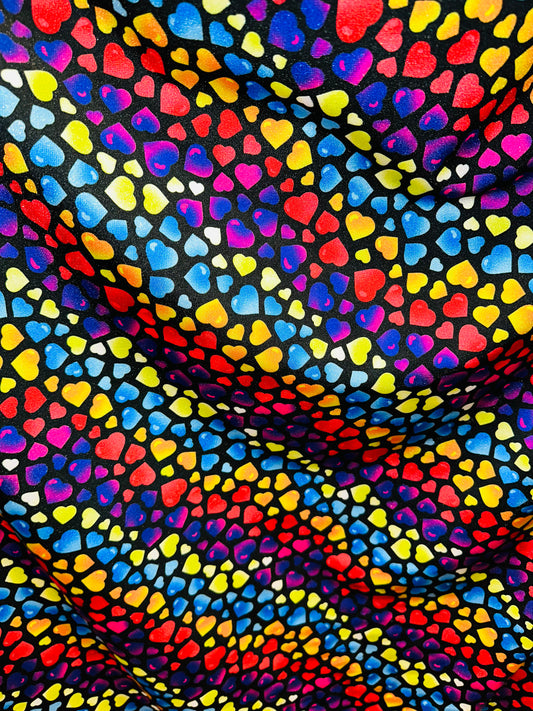 Romantic Hearts Design Black Multicolor Print on Best Quality of Nylon Spandex 4-Way
