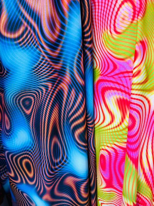 New Modern abstract lava design multicolor print on best quality of nylon spandex 4-way stretch 58/60”