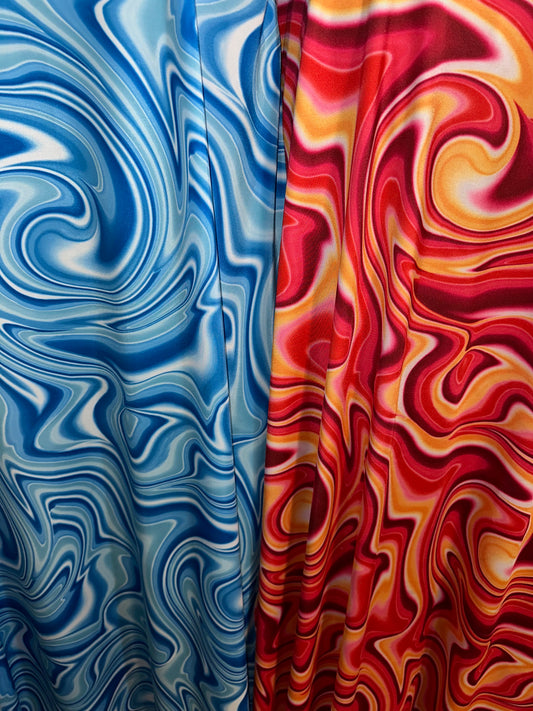 Modern Abstract Lava design print on great quality of nylon spandex 4-way stretch 58/60”