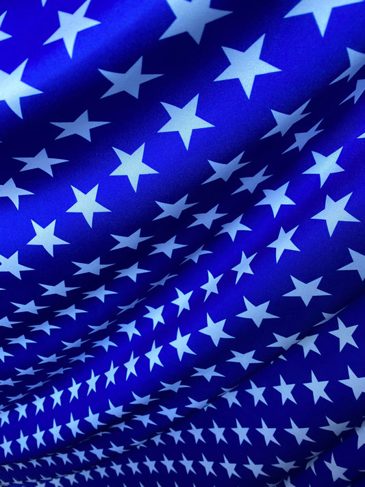 Big star print design blue/white on nylon spandex 4way stretch 58/60" Sold by the yd. Ships worldwide from Los Angeles California USA