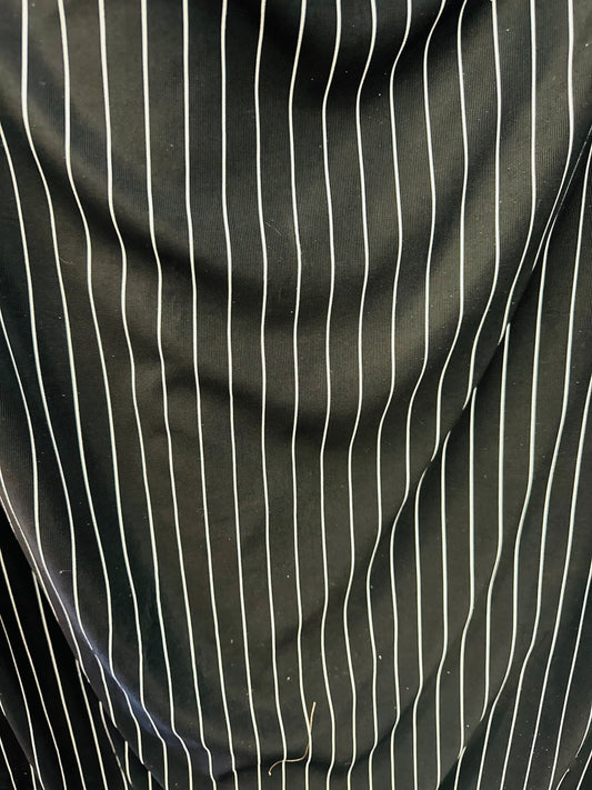 Pin stripes on nylon spandex 4-way stretch 58/60” Sold by the YD. Ships worldwide from Los Angeles California USA.