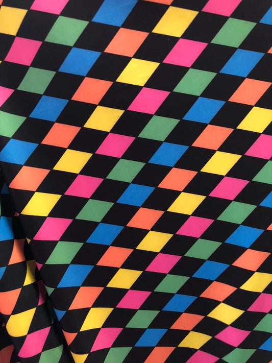 New Harley Quinn design multicolor nylon spandex 4way strech 58/60" Sold by the YD. Ships worldwide from Los Angeles California USA