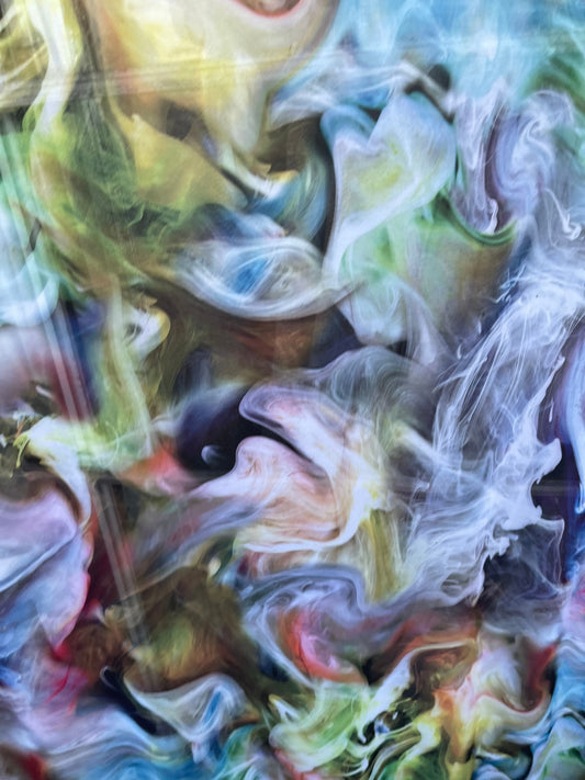 New Modern abstract smoke design multicolor print on great quality of nylon power mesh spandex 4-way 58/60” Sold by the YD. Ships worldwide