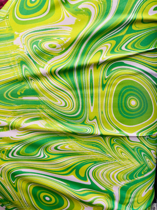 New abstract Lava design print on great quality of poly spandex green/yellow 4-way stretch 58/60” Sold by the YD. Ships Worldwide from L.A
