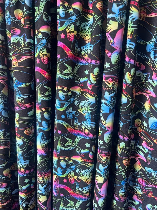 Vegas design Black/Multicolor print on best quality of nylon spandex 4-way stretch 58/60” Sold by the YD. Ships Worldwide from Los Angeles