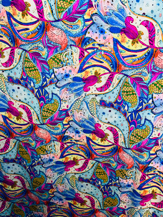 New Luxury fish abstract design Multicolor print on best quality of nylon spandex 4-way stretch 58/50” Sold by the YD.