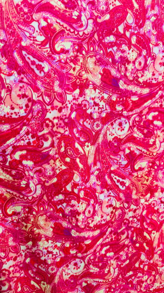 New Paisley design Warm pink color print on best quality of nylon spandex 4-way stretch 58/60” High quality fabrics by AlexLAFabrics