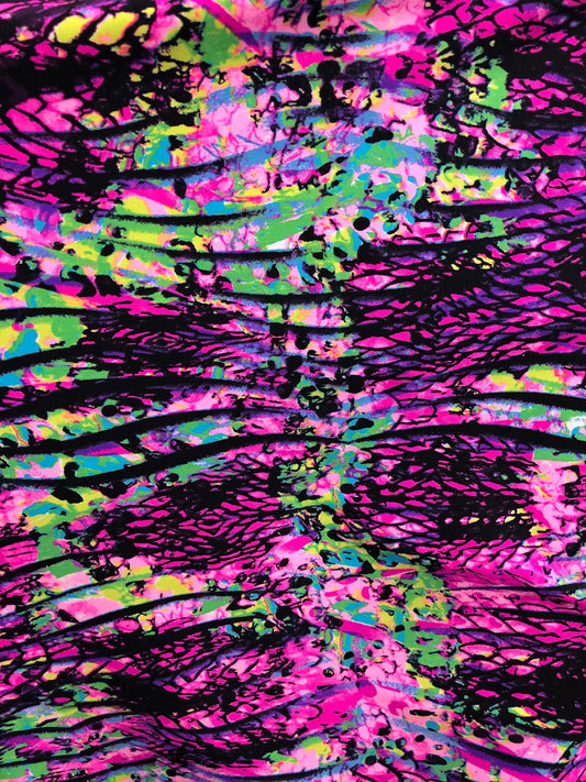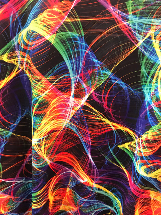 New abstract design black multicolor on nylon spandex 4 way stretch 58/60" Sold by the YD. Ships worldwide from Los Angeles California USA