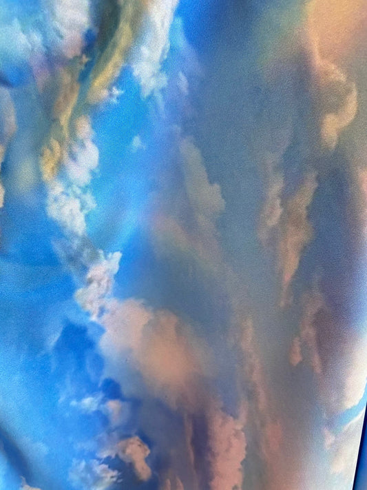 New celestial clouds design print on great quality of nylon spandex 4-way stretch 58/60” Sold by the YD. Ships Worldwide from Los Angeles CA