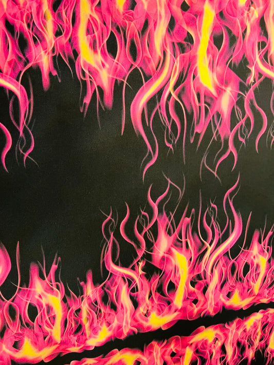Flames design Black/pink fire print on great quality of Poly spandex 4-way stretch 58/60” Sold by the YD. Ships Worldwide from Los Angeles
