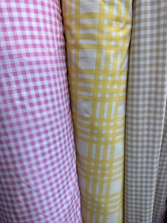 Gingham design print on great quality of nylon spandex 4-way stretch 58/60” Sold by the YD.