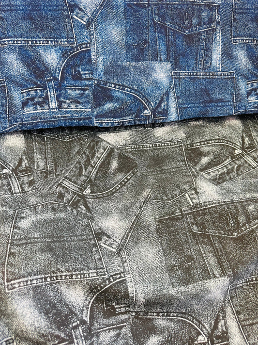 New denim jeans design print on great quality of nylon spandex 4-way stretch 58/60” Sold by the YD.