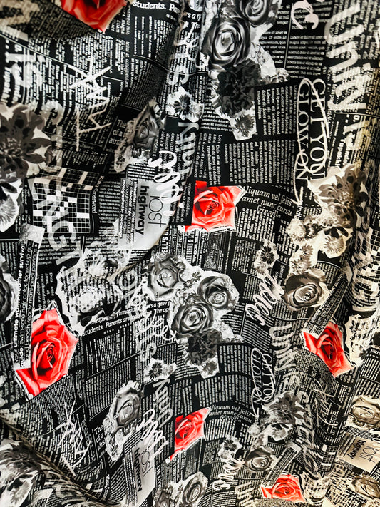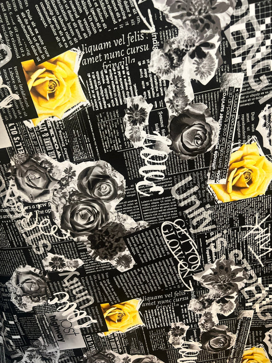 New Newspaper fashion flower design print on great quality of nylon spandex 4-way stretch 58/60”