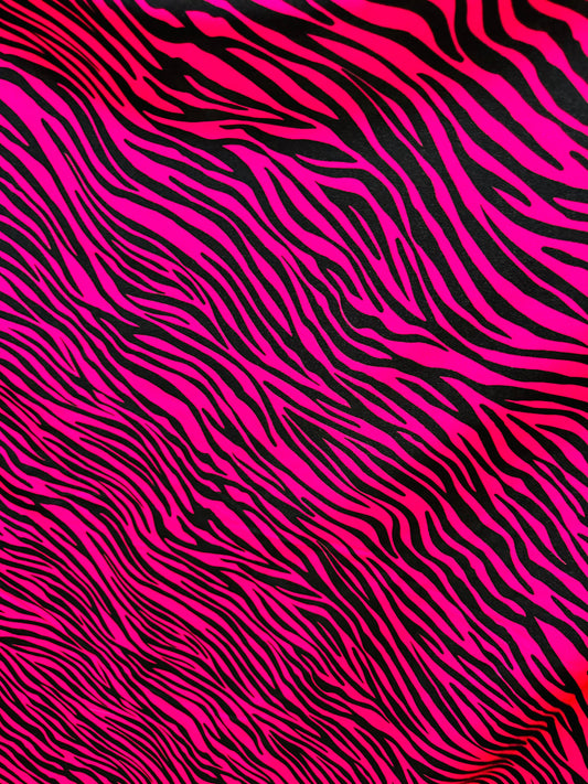 Exotic zebra design Fuchsia/black print on best quality shiny nylon spandex 4-way stretch 58/60”
