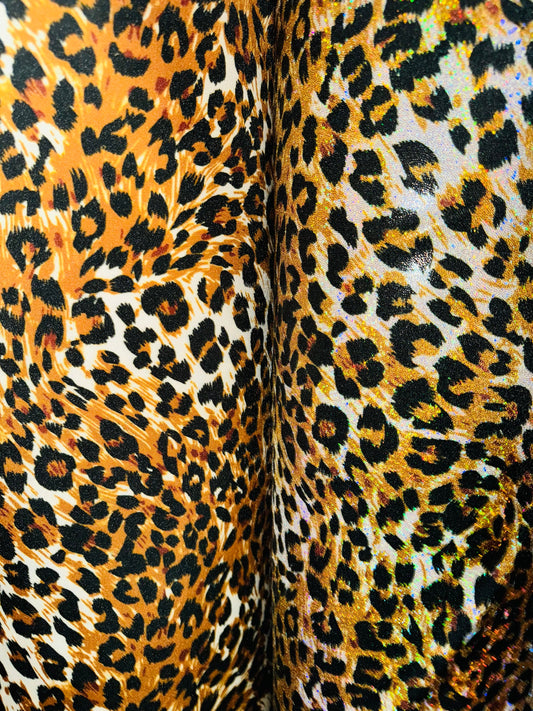 Exotic Leopard design with hologram foil and without foil nylon spandex 4-way stretch 58/60” High quality fabrics by AlexLAFabrics