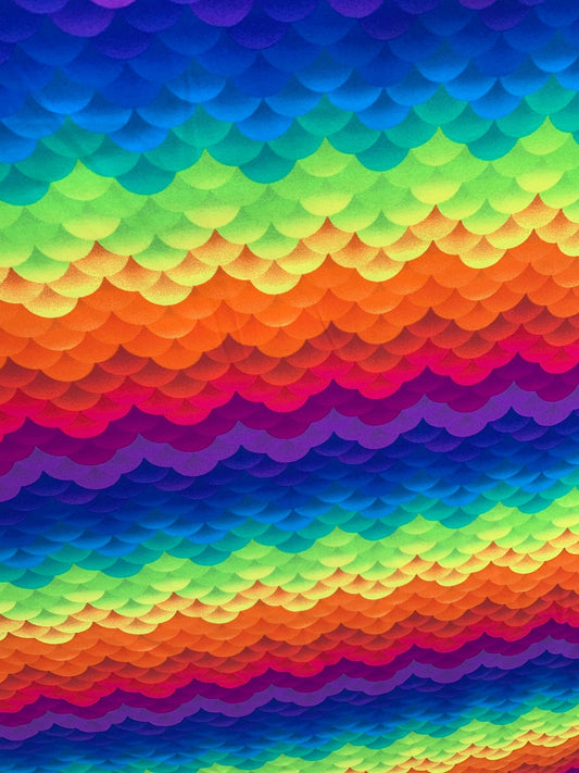 New rainbow mermaid design print on heavy single spandex 4way stretch 58/60" Sold by the YD. Ships worldwide from Los Angeles California USA