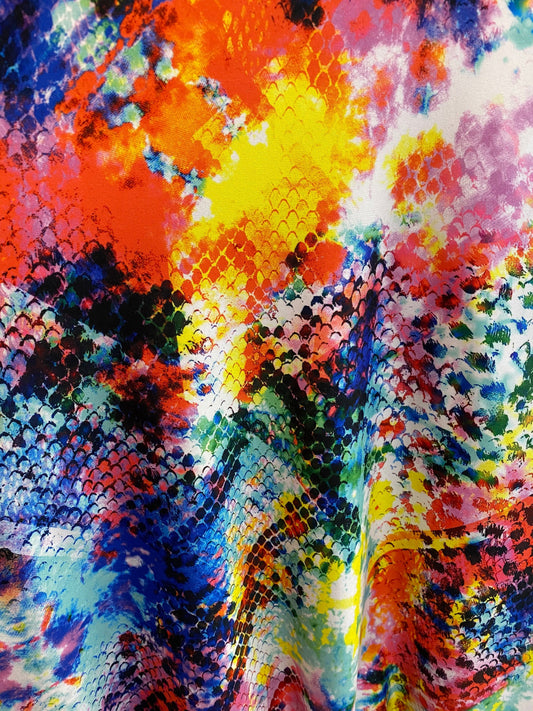 New Exotic snake design multicolor print on great quality of nylon spandex 2-way stretch 58/60” Sold by the YD. Ships Worldwide from L.A CA.