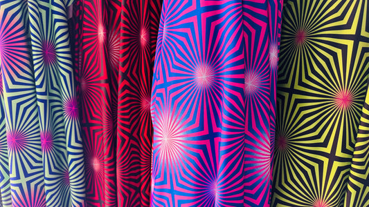 New Psychedelic Abstract design 2-tone print on great quality of poly spandex 4-way stretch 58/60” High Quality fabrics by AlexLAFabrics