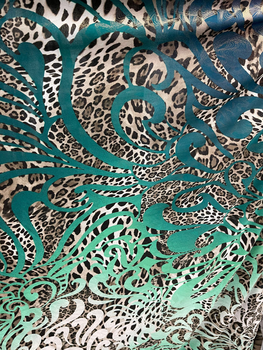 New swirl design with exotic animal print 2-way stretch 58/60” Sold by the YD. Ships Worldwide from Los Angeles California USA.