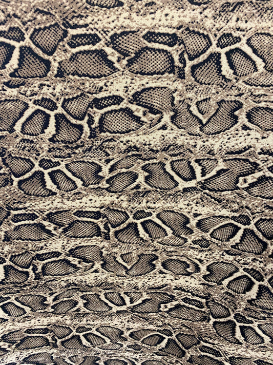 New snake design print on poly spandex 2-way stretch 58/60” Sold by the YD. Ships worldwide from Los Angeles California USA.