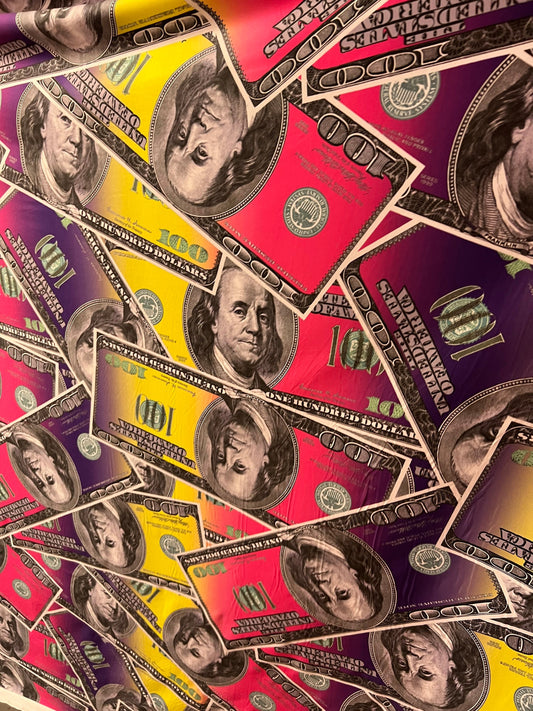 New Money design print on light weight of nylon spandex 2-way stretch 58/60” Sold by the YD. Ships Worldwide from Los Angeles California USA