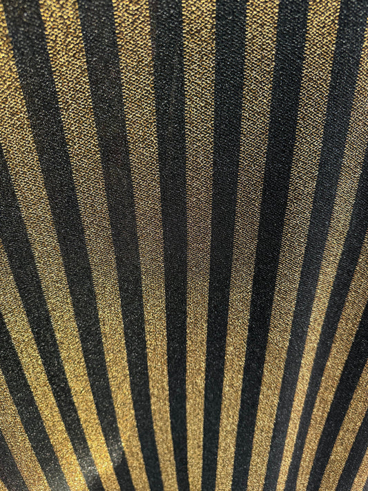 New metallic stripes design black/gold 2-way stretch 58/60” Sold by the YD.