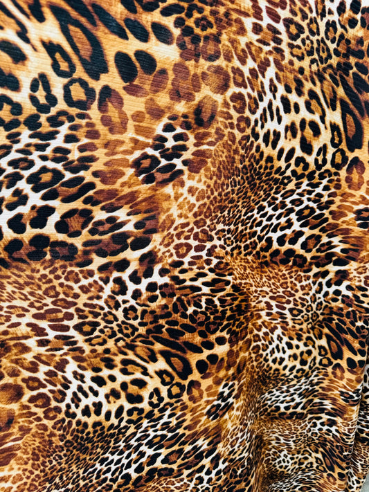 Leopard exotic design print on ribbed spandex knit 4-way stretch 58/60”