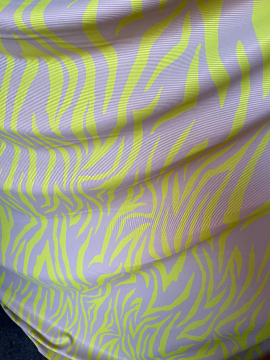 New Zebra design Ribbed spandex 4-way stretch 55/57” Sold by the YD. Ships Worldwide from Los Angeles California USA
